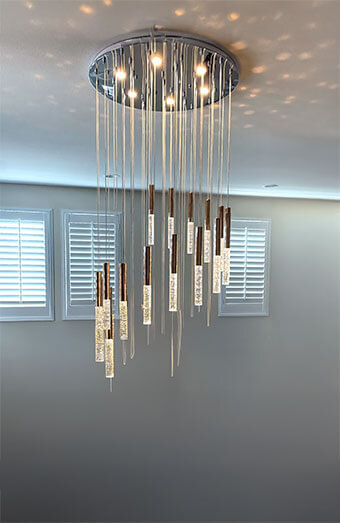 Professional installation of all lighting types including pendant lights, downlights, oyster lights and chandeliers for new homes, renovations and commercial spaces.